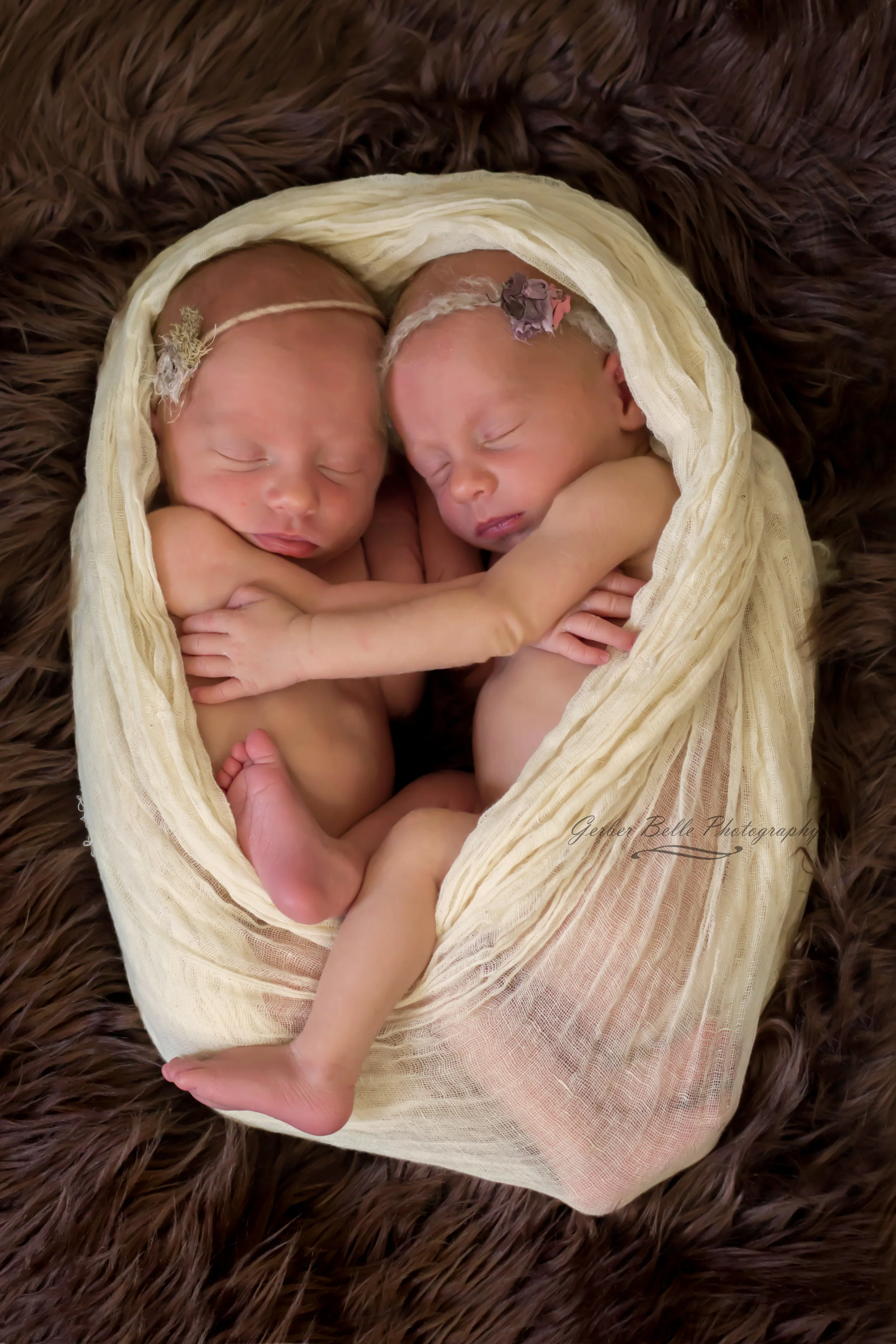 Only days old, and newborn identical twin girls two peas in a pod.